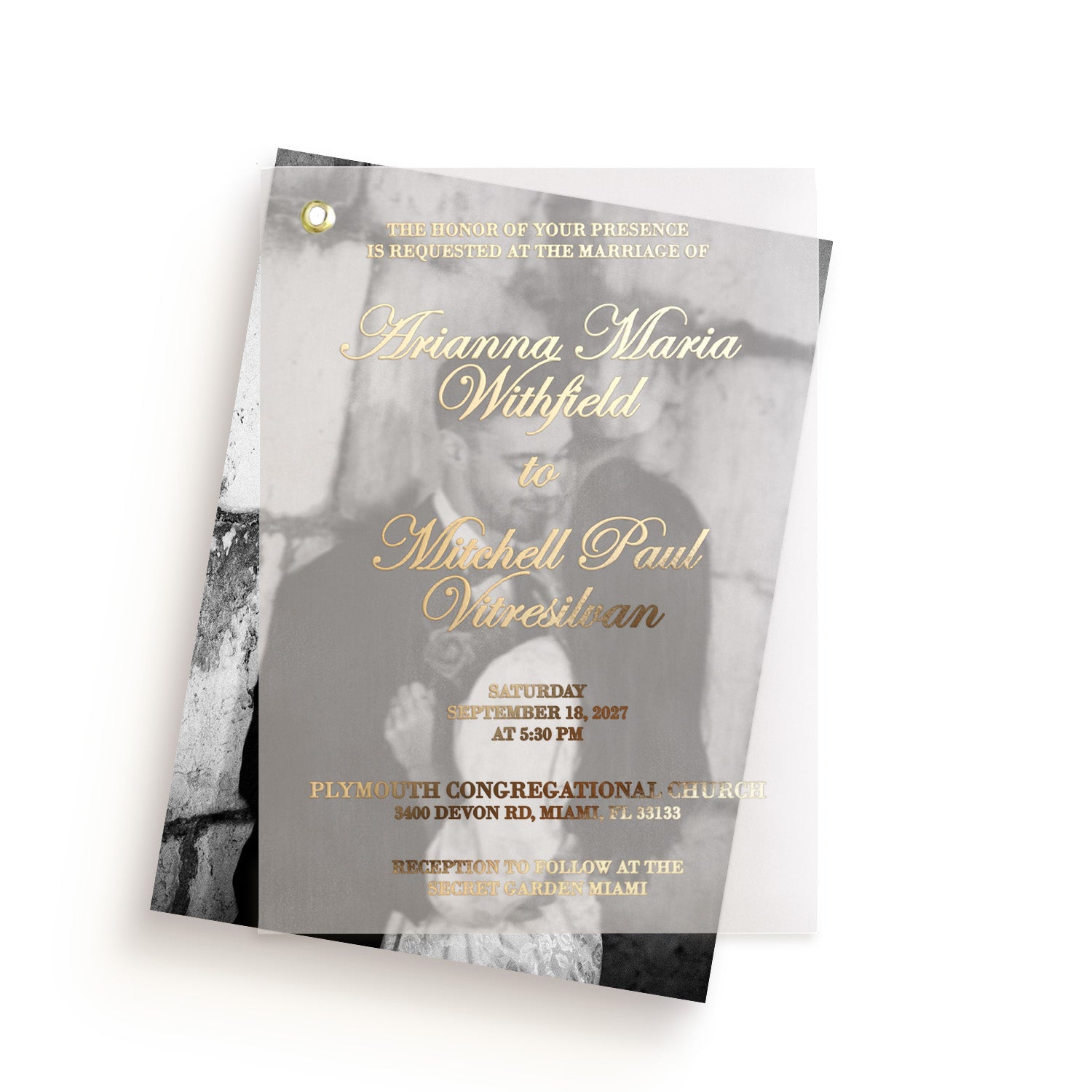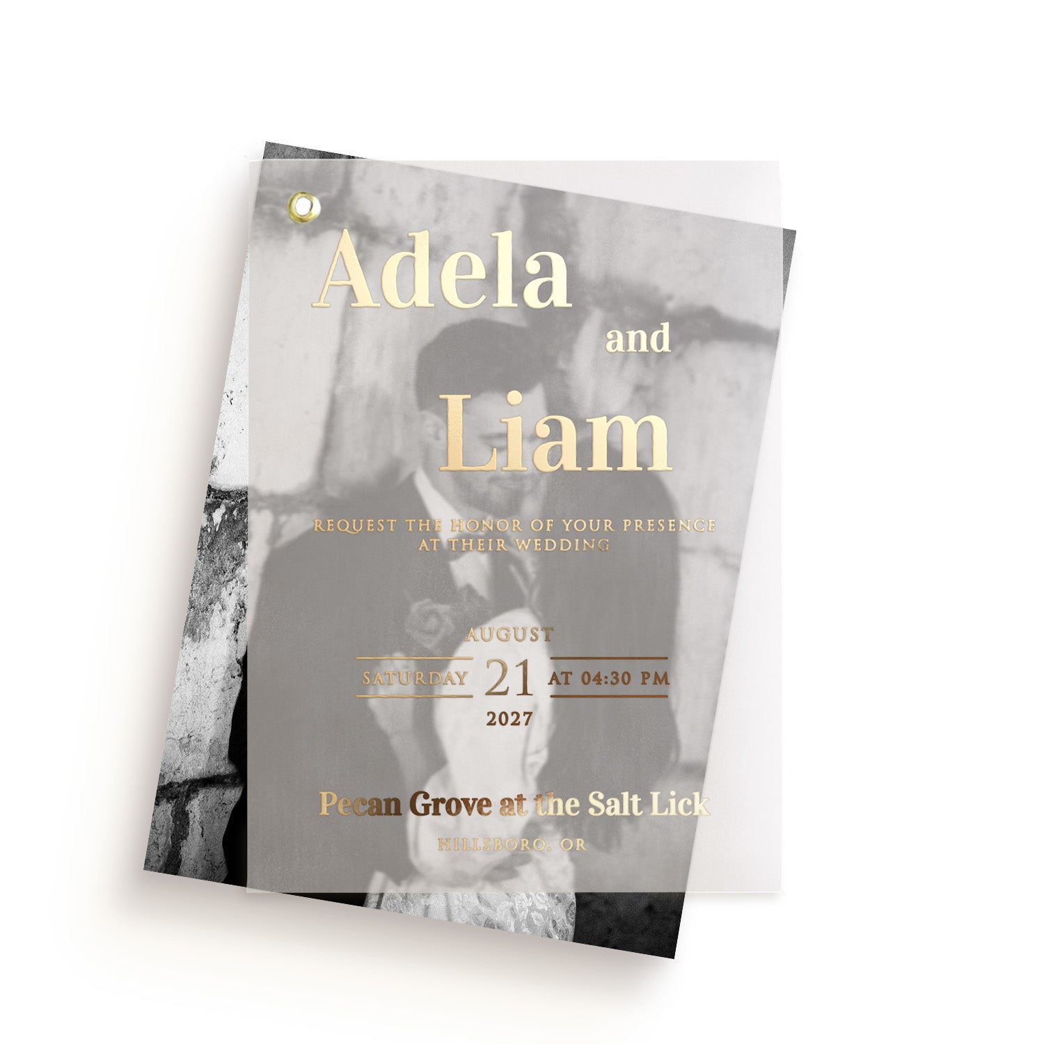 Vellum Wedding Invitation with Picture and Foiled Lettering