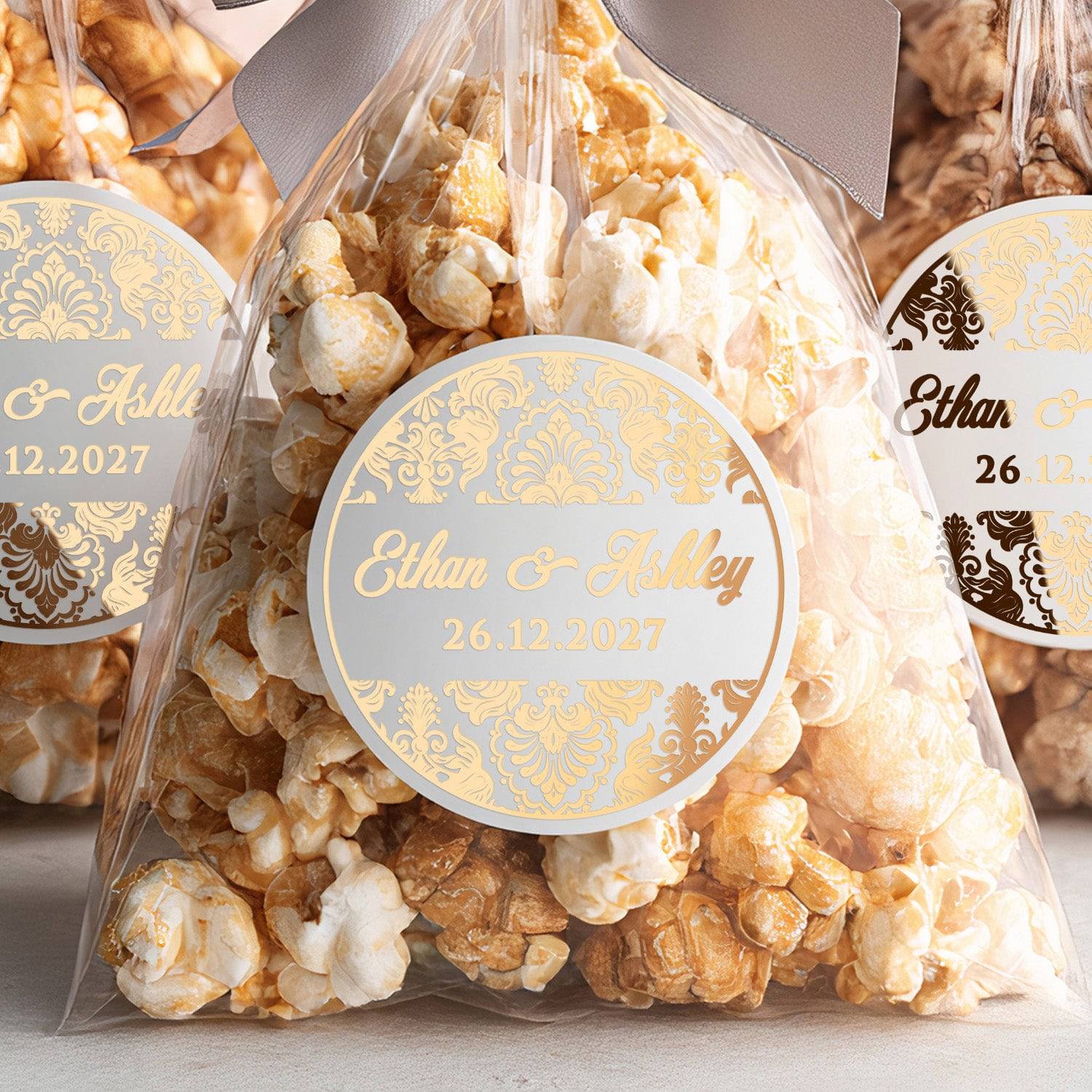 Add a luxurious stunning touch to your wedding favors with these baroque-style Damask Ornaments Wedding Stickers. Perfect for sealing favor bags, gift boxes, popcorn bags, and envelopes, they bring timeless elegance to your celebration with their ornate design.