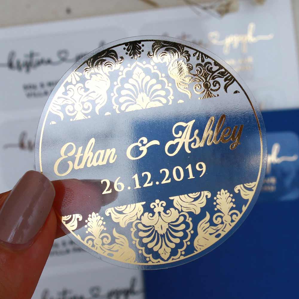 Available in gold, rose gold, silver foils or black print on clear or white easy peel & stick labels sheets.