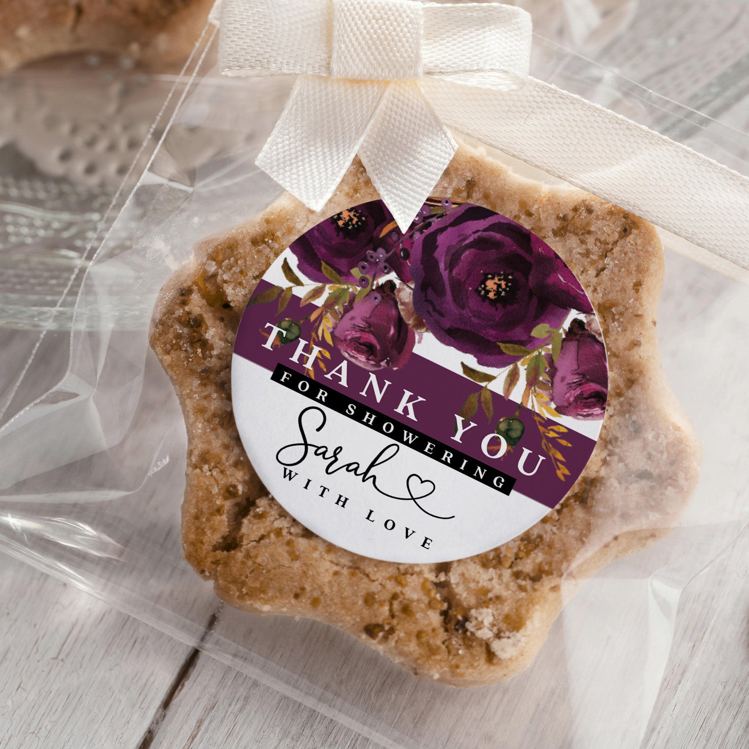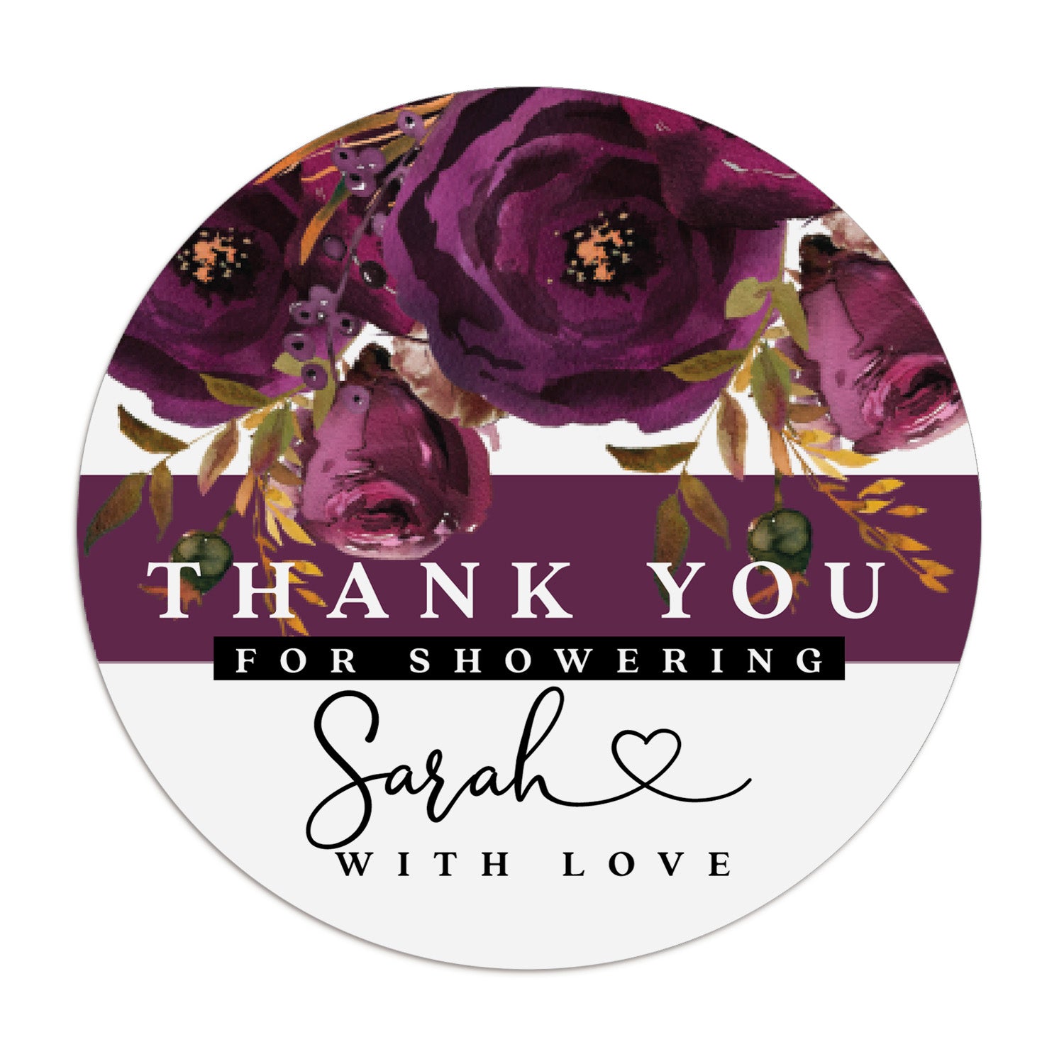 Plum and White Floral Thank you for Showering Stickers - XOXOKristen