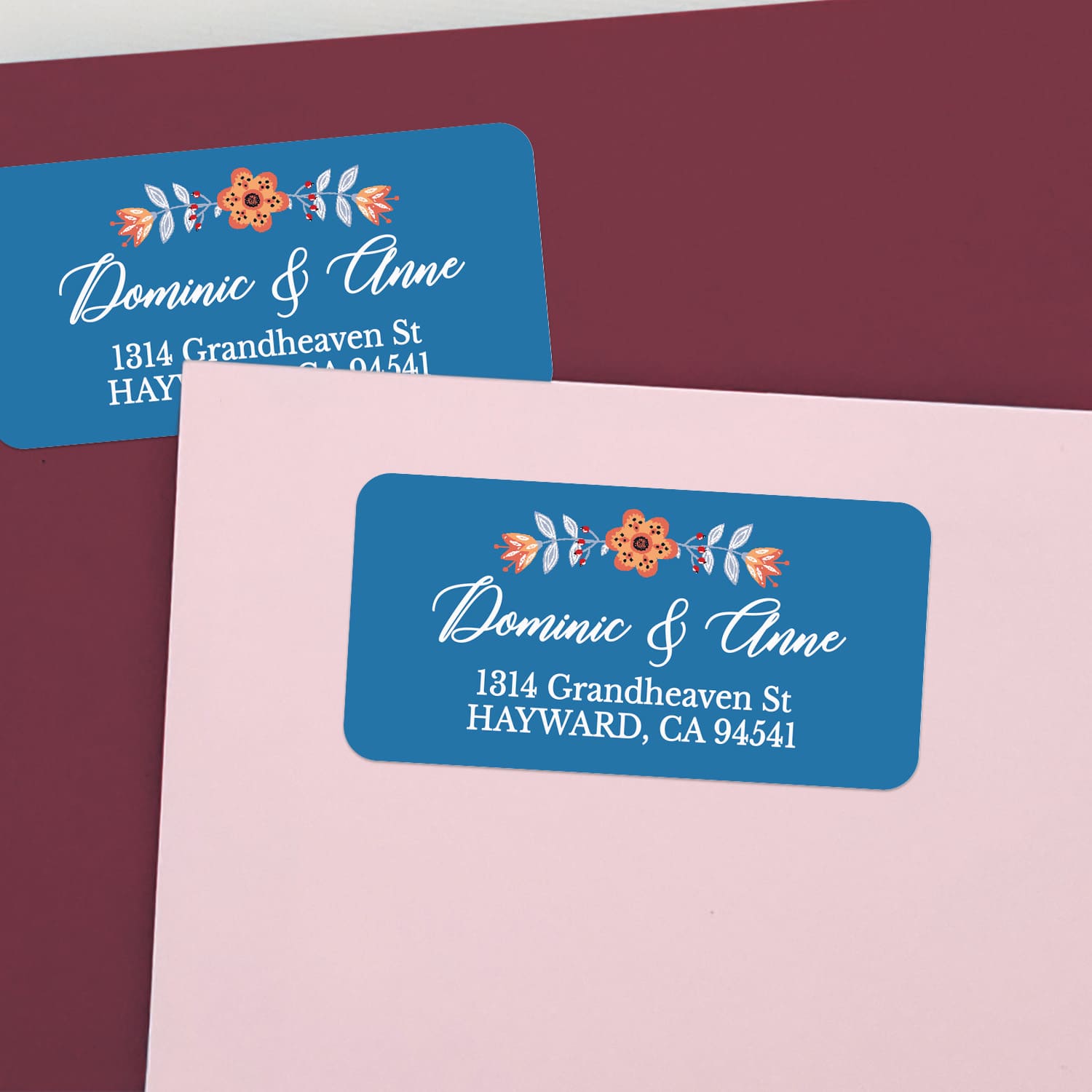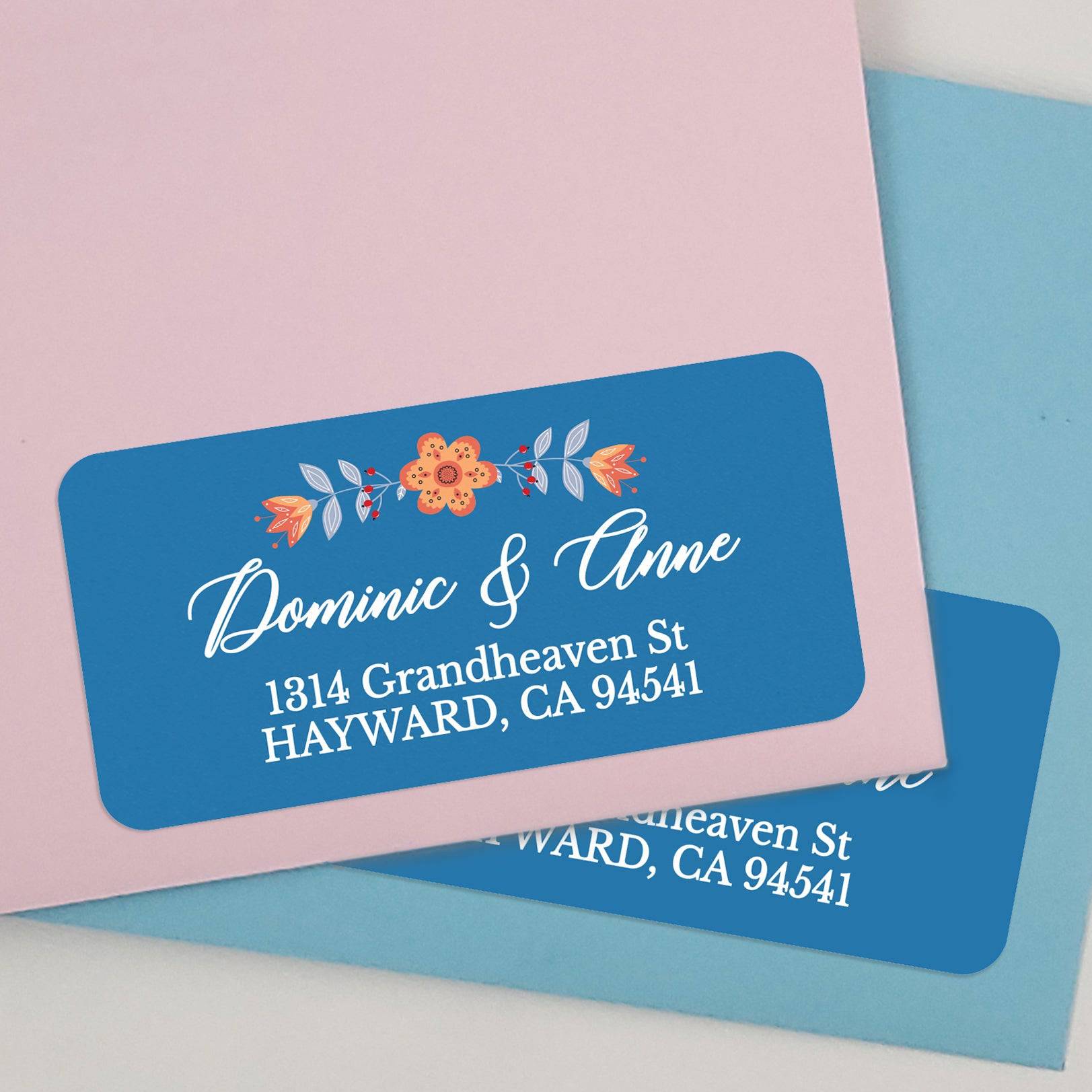 Add a personal finishing touch to your mail with these floral return address labels, designed for style and convenience. Featuring a charming orange blossom with detailed petals and leaves, the labels are printed on a bold blue background that makes the white script lettering stand out beautifully. Each label is customizable with your name and address, ensuring every envelope, package, or invitation carries a polished and memorable impression.