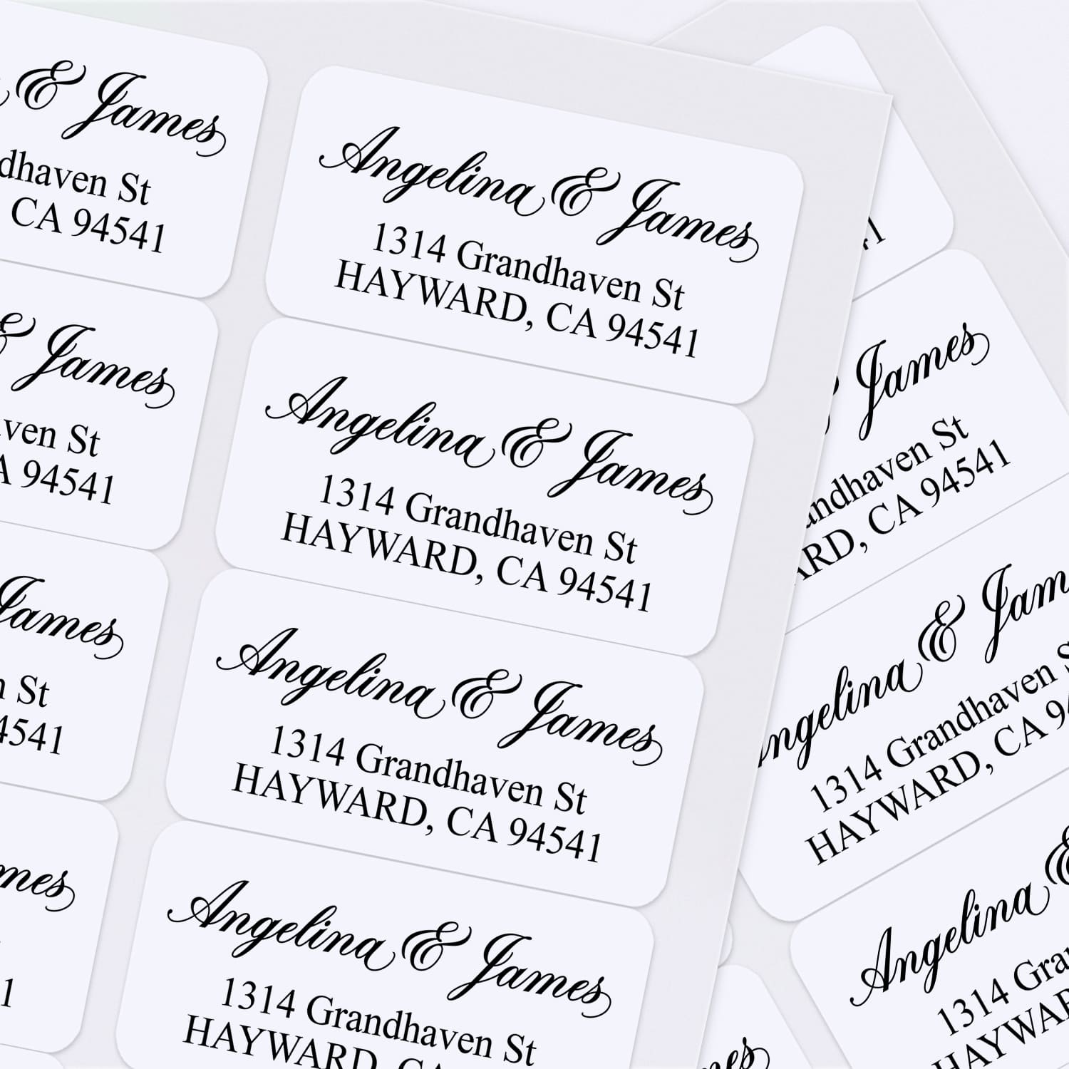 XOXOKristen bulk sheet of elegant calligraphy return address labels in black on white with rounded corners for envelopes – XOXOKristen