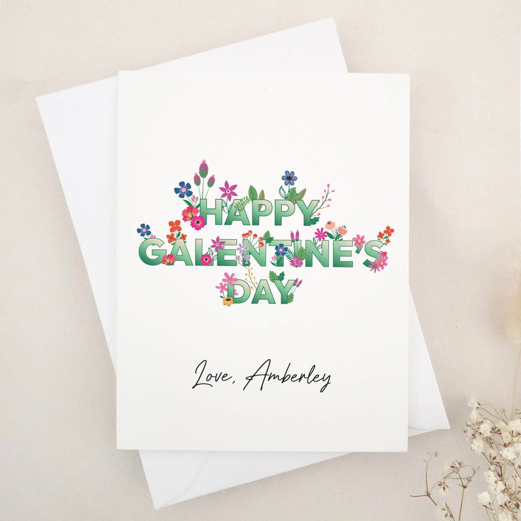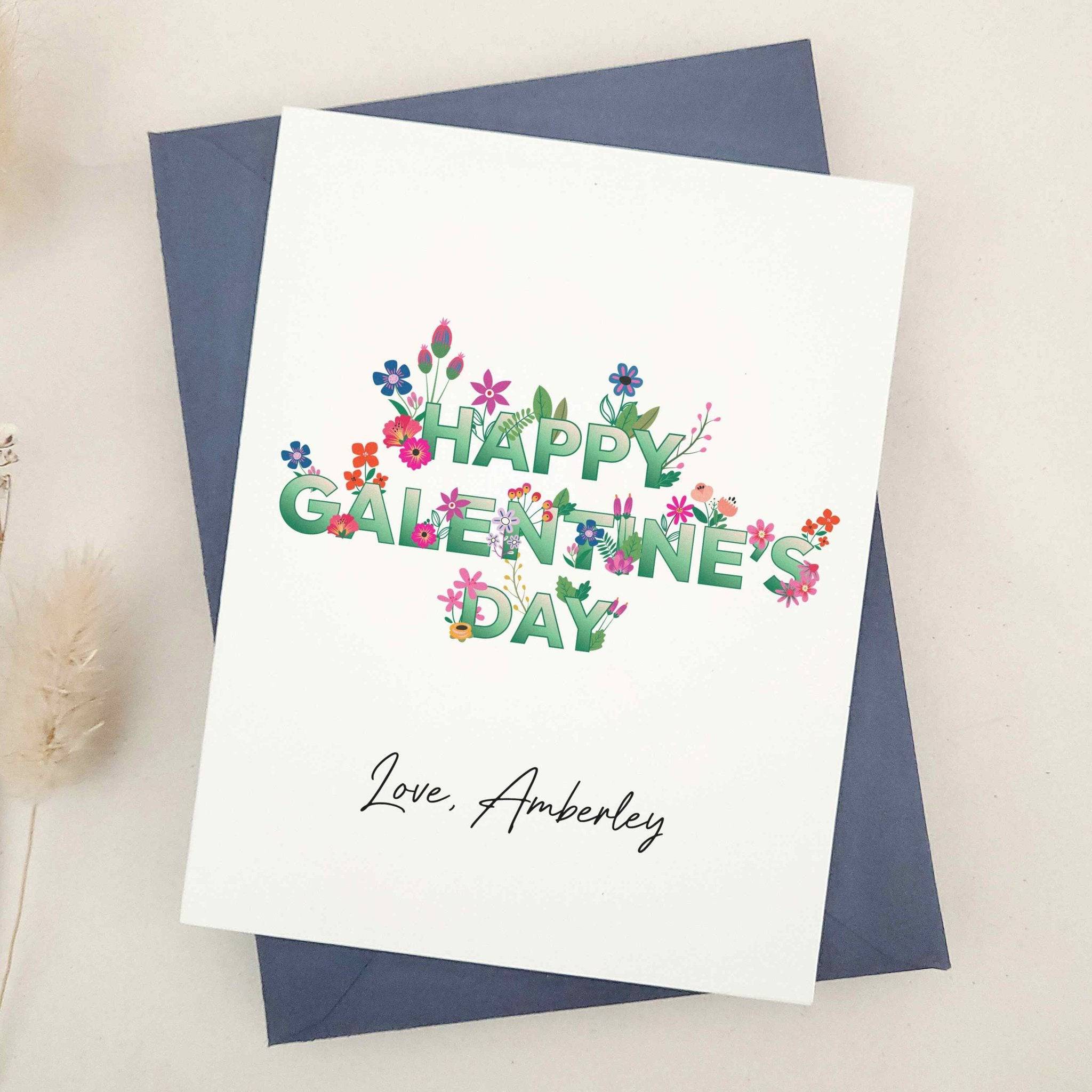 Happy Galentine’s Day card with colorful floral lettering and envelope – XOXOKristen