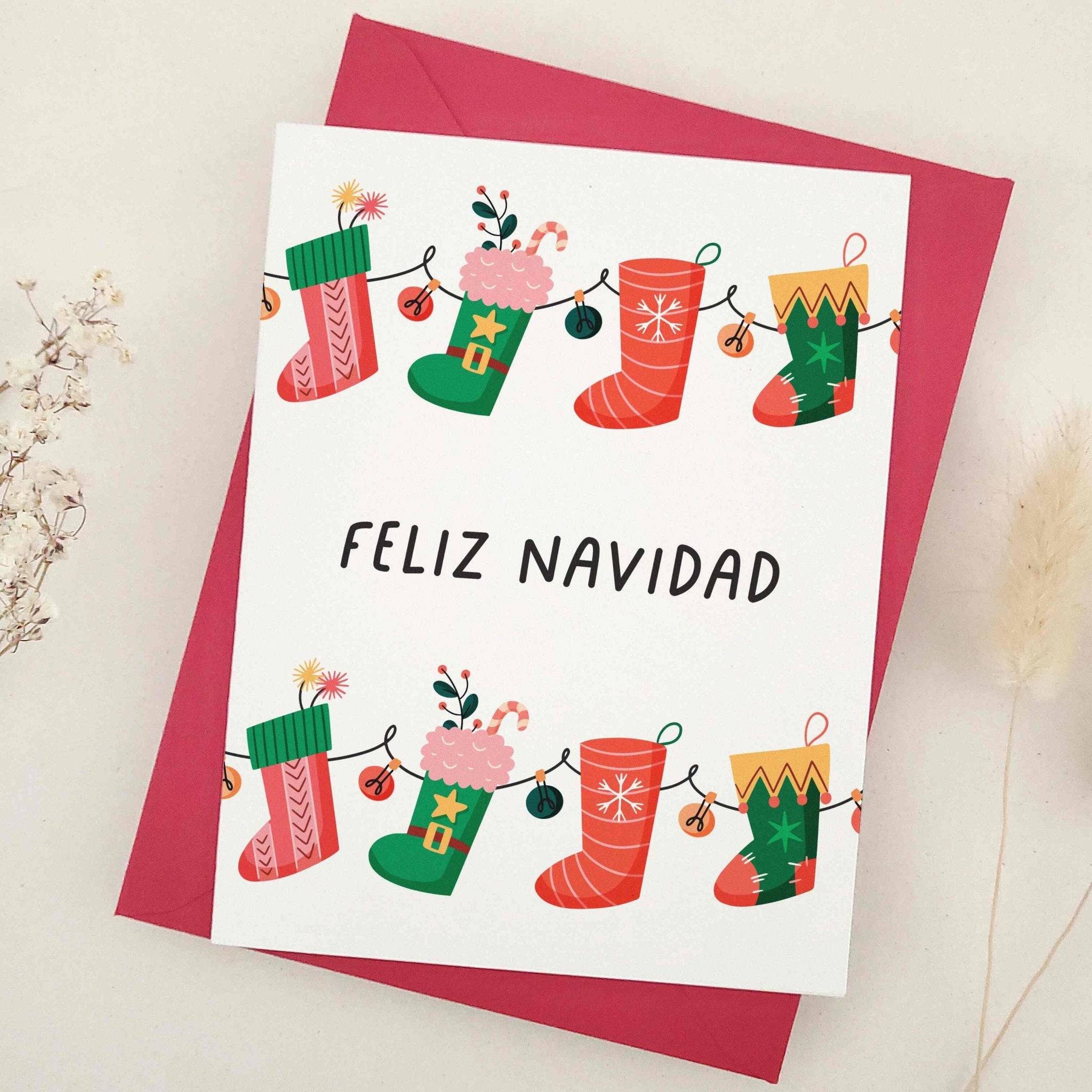 Perfect for sending joyful wishes to Spanish-speaking family, friends, or colleagues, this card brings vibrant charm and festive spirit to the season.