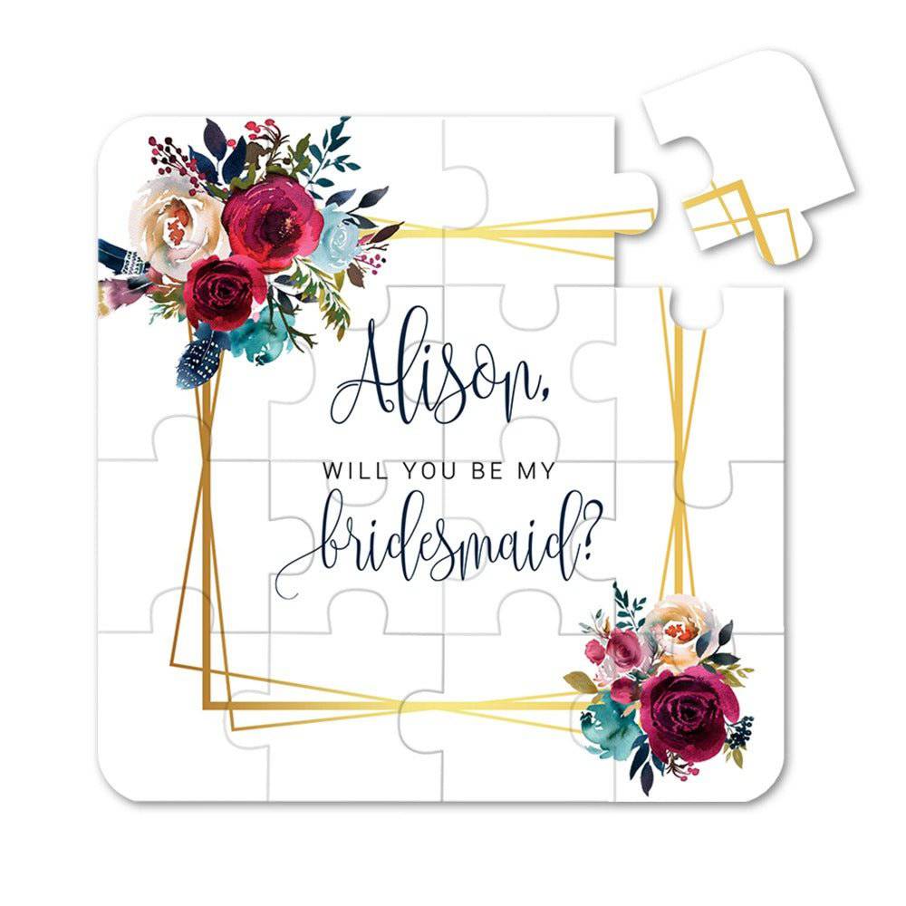 Boho Flowers & Gold Frame Bridesmaid Puzzle